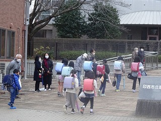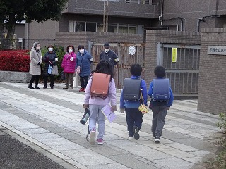 今日はとても寒い一日でした。そんな中,地域の方々が子どもたちにあたたかい「あいさつ」をプレゼントしてくれました。